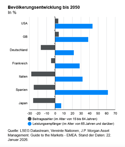 Japan ist auch Vorreiter in der demografischen Entwicklung. Die Alterung der Gesellschaft und die steigenden Anforderungen an die Sozialsysteme trugen zur Verschuldungspolitik der letzten Jahre bei. „Die demografische Situation wird sich in den nächsten 25 Jahren in den USA und insbesondere in Europa dramatisch verschlechtern. Mehr Schulden scheinen deshalb in den USA das Mittel der Politik zur Bekämpfung der wachsenden Ungleichheit zu sein. Und in Europa scheinen sie unvermeidlich, um den kaum mehr zu finanzierenden Wohlfahrtsstaat am Leben zu halten“, analysiert Tilmann Galler.